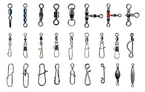 6.دوراهی ها و هرزگرد ها swivel:برای جلوگیری از تابیدن ریسه ها هنگام پرتاب و مهار و کنترل بهتر ماهی هنگام به دام افتادن از دوراهی ها و هرزگردها در ساخت ریسه های کپوری استفاده می شود که حتما نسبت به نوع ریسه از سایز مناسب و ملزوما"جهت جلوگیری از انعکاس نور، رنگ تیره باید استفاده نمود.